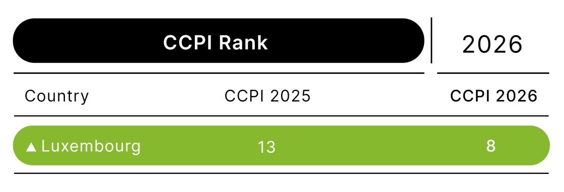 - Luxembourg has an overall high rating, at 8th in the CCPI, up five spots from last year