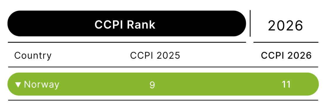 - Norway is down two places to 11th in the CCPI and retains an overall high rating