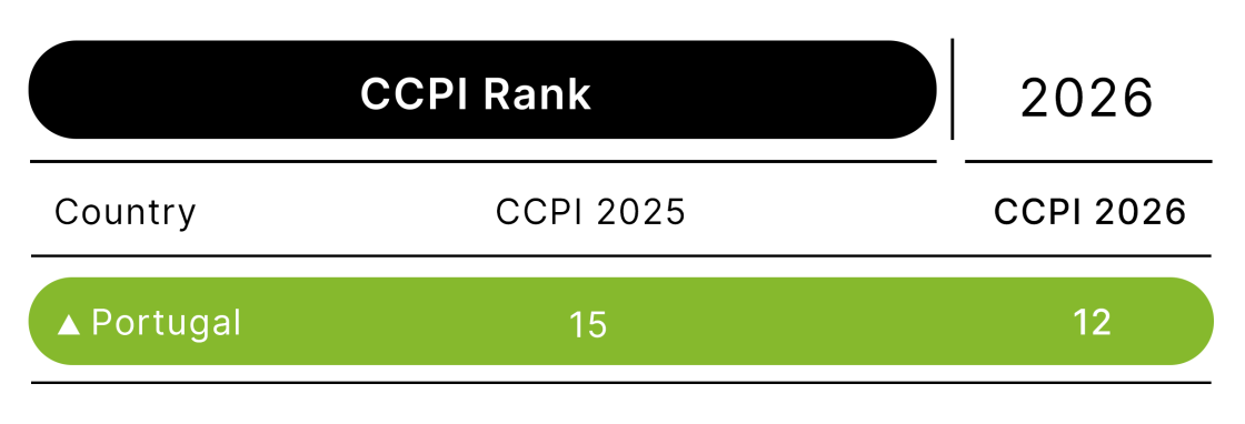 - Portugal remains a high performer in the CCPI, up three spots to rank 12th